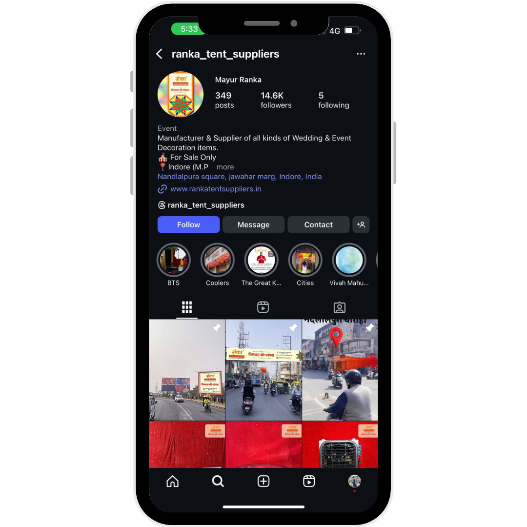 Amplify local visibility, drive inquiries through Instagram, and position the brand as the go-to tent and decor supplier in Indore.